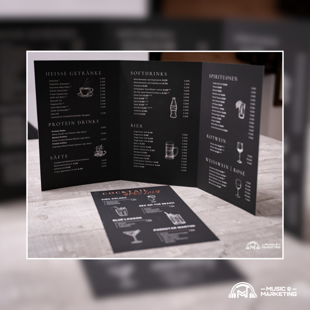 Printdesign ist mehr als nur Gestaltung — es ist ein wichtiger Bestandteil eures Marketingauftritts. Gedruckte Flyer, Plakate, Speisekarten und Werbemittel erreichen Menschen direkt und bleiben oft länger im Gedächtnis als digitale Inhalte. Gerade im Zusammenspiel mit Social Media, Webseite und anderen Kanälen entsteht ein stimmiger Auftritt, der eure Marke sichtbar macht und Vertrauen aufbaut.